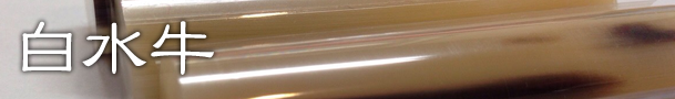 飴色の体が特徴の透明度の高い印材。オランダ水牛とも呼ばれ、色付きや黒水牛と比べ手に入りずらい高級印材と呼ばれます。独特の淡い美しさは特に女性に人気で、直接ご覧になりたい方はお気軽にご来店下さい。 また当店の取り扱う白水牛は全て芯持ちであり、数ある印材の中でも最高級の耐久性を持ちます。